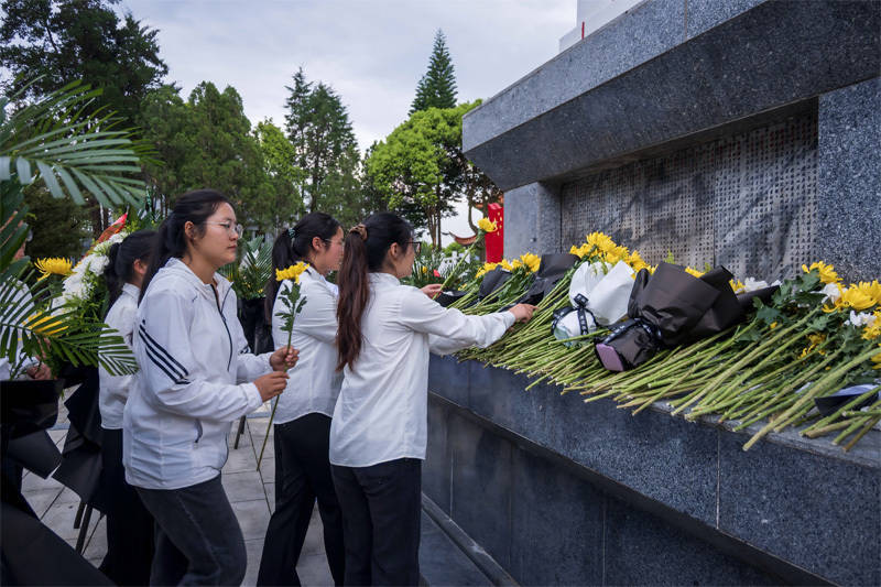 在临沧市烈士陵园,庄严肃穆的祭扫仪式将活动推向高潮。200余名师生共唱国歌、肃立默哀、敬献花篮;党员重温入党誓词、团员重温入团誓词、少先队员庄严呼号,以仪式强化身份认同、彰显使命担当。师生有序瞻仰烈士墓区,擦拭墓碑、敬献白花,以实际行动守护英烈荣光。各学段代表依次发言,畅谈对英烈精神的感悟,一致表示将以英烈为榜样,把追思之情转化为奋进之力。